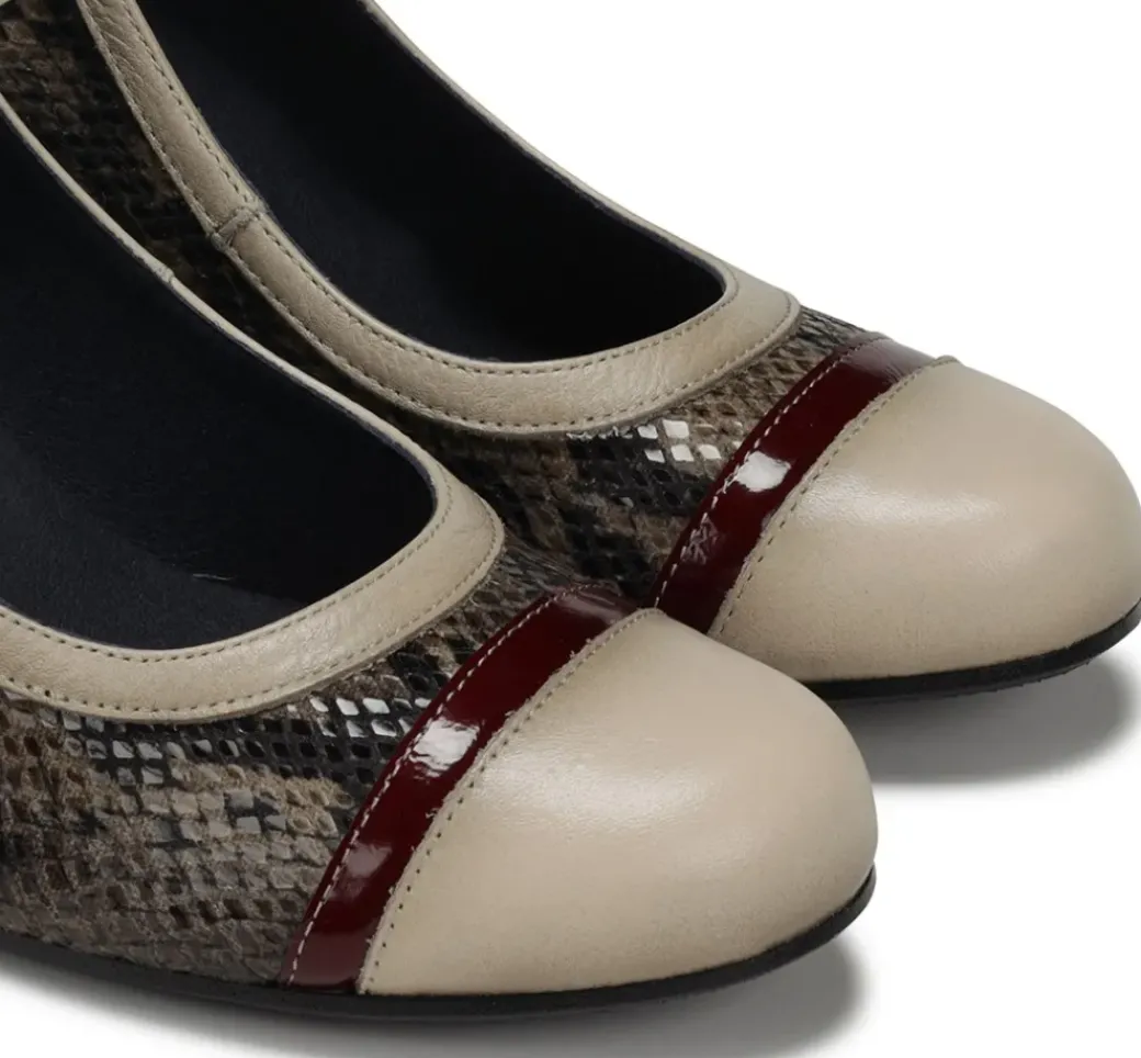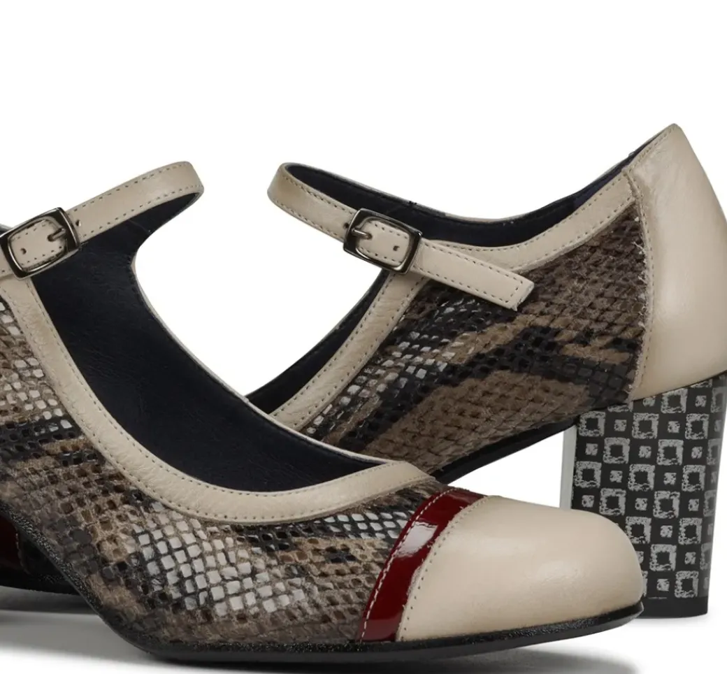 - Combina la elegancia con el toque moderno gracias al estampado geométrico del tacón