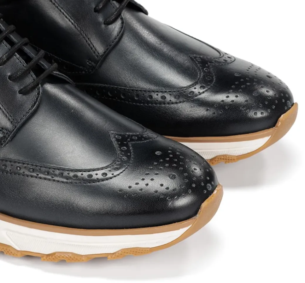 Walter, la línea ambiciosa que fusiona los estilos clásico y deportivo. Su diseño moderno pero elegante con el talón marcado permite llevarlos tanto con looks formales como informales . Se trata del calzado perfecto si lo que buscas es salir de tu zona de confort sin perder tu esencia. Además, la suela redondeada y ligera de EVA te aportará una comodidad remarcable.